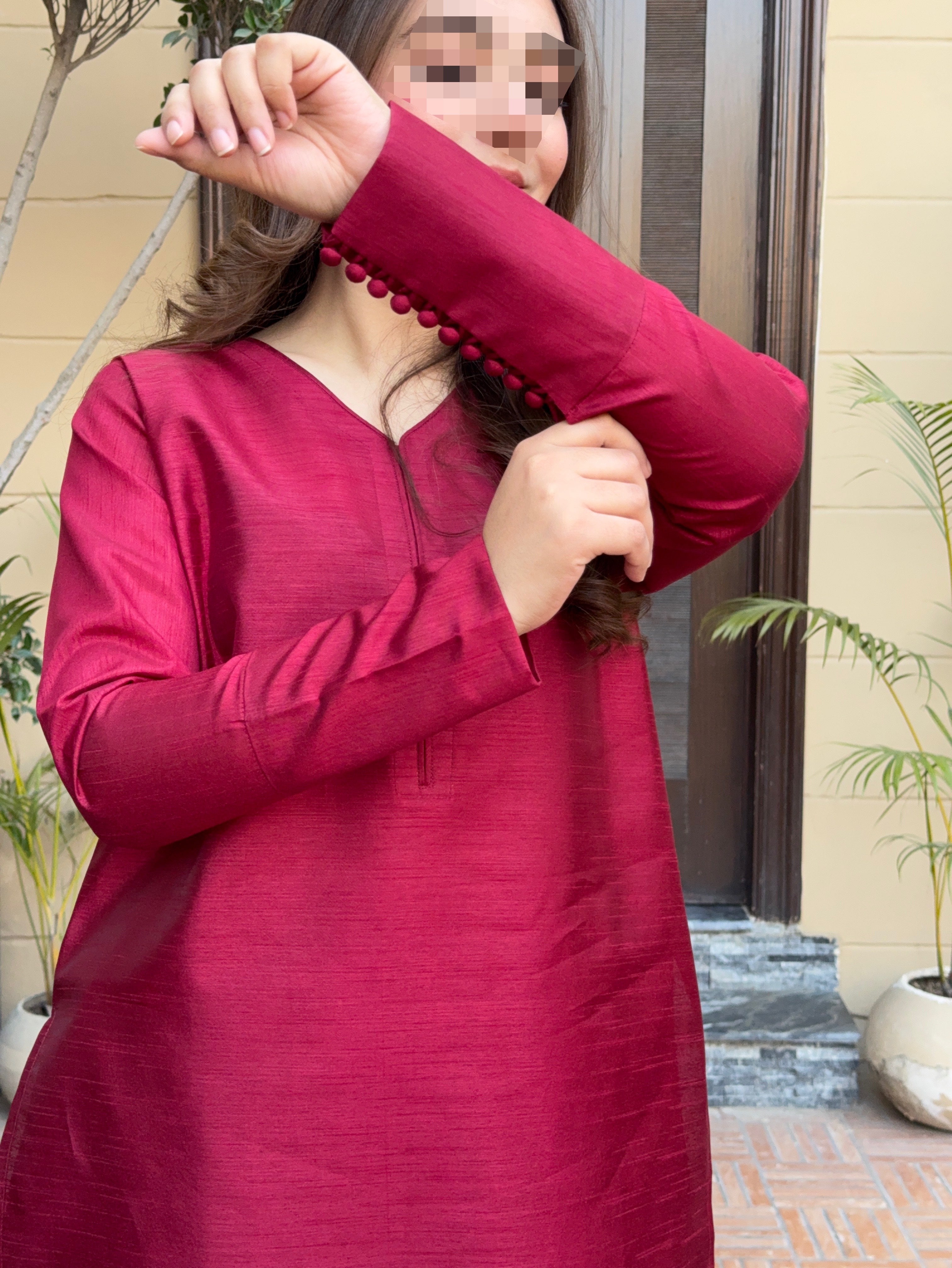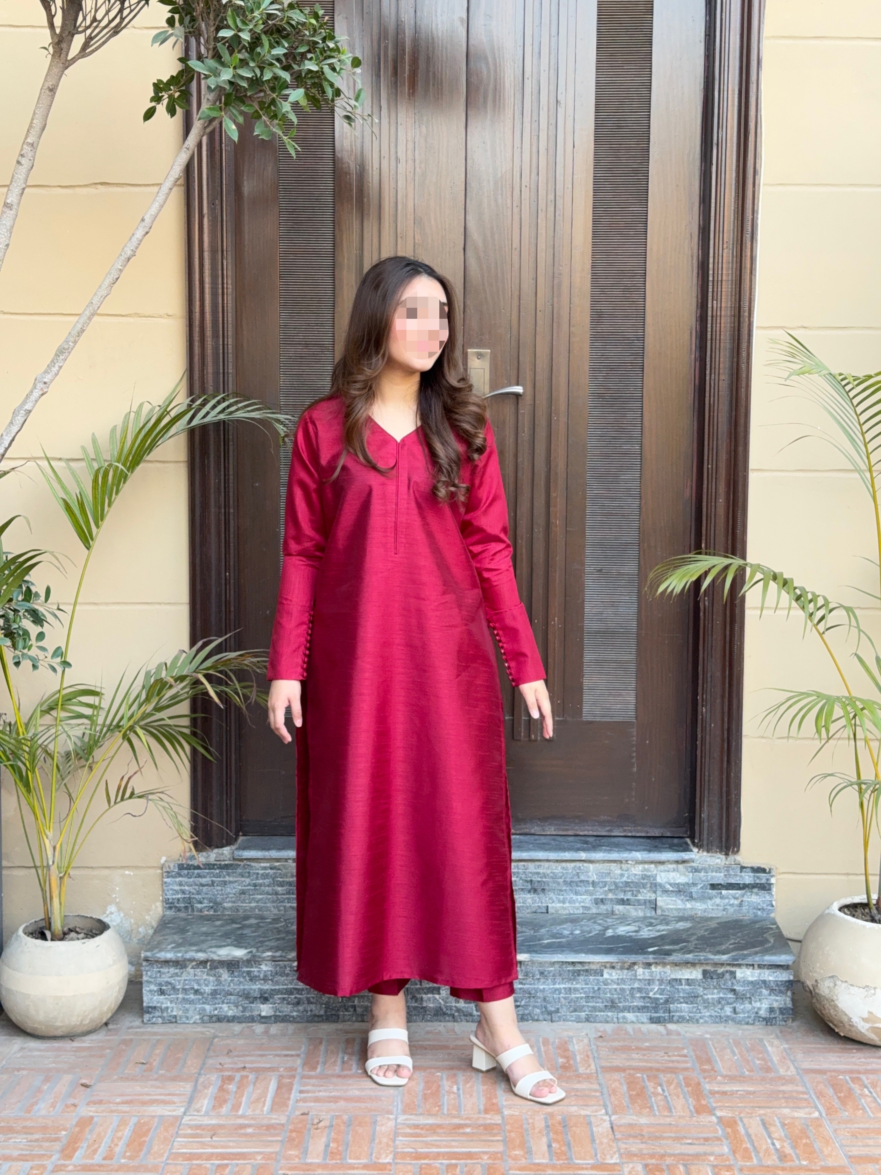 2PC Shirt and TrouserFabric: RAW SILKColor : MAROON
